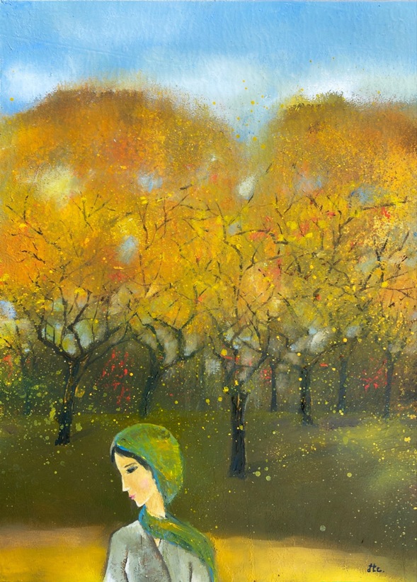 ngoài sân chiếc lá nghiêng mình buông lơi