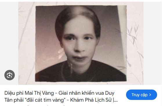 Nhưng tôi không biết chị là cháu nội của Cụ Mai Khắc Đôn (Quan Thượng thư bộ lễ dưới triều vua Duy Tân). Và cũng là cháu gọi Hoàng Phi Mai Thị Vàng bằng cô ruột. Hôm nay có dịp lên nhà thăm, chị mới kể cho tôi nghe. Thế là tôi làm một cuộc phỏng vấn nhỏ: Xin chị kể lại một vài kỷ niệm với người cô ruột Hoàng Phi của mình!