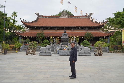 (Ảnh tác giả trên sân chùa, trước cửa chính điện Tam bảo)